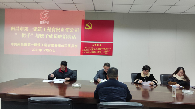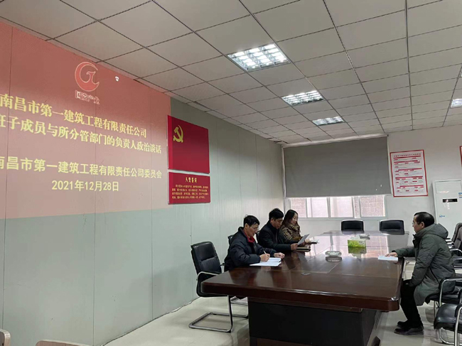 為切實(shí)加強(qiáng)黨的政治建設(shè),推動(dòng)上級(jí)“一把手”抓好下級(jí)“一把手”,深化同級(jí)監(jiān)督,發(fā)揮黨內(nèi)政治監(jiān)督談話在從嚴(yán)教育管理監(jiān)督干部中的作用。根據(jù)《南昌國(guó)資產(chǎn)業(yè)經(jīng)營(yíng)集團(tuán)有限公司2021年度政治談話工作方案》(洪國(guó)產(chǎn)黨字【2021】120號(hào))文件精神,一建公司黨委于2021年12月27-28日開(kāi)展了政治談話。